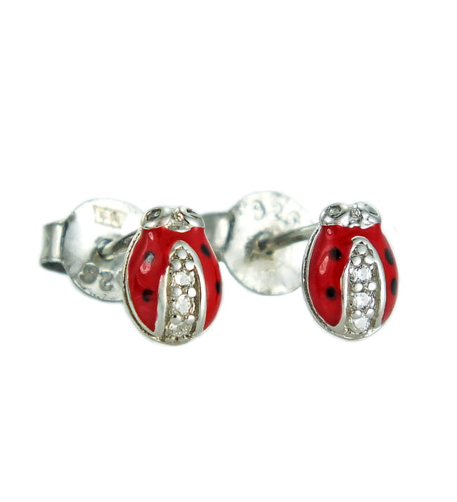 Srebrne Rodowane Kolczyki Biedronki - Biedroneczki z Cyrkoniami !!!