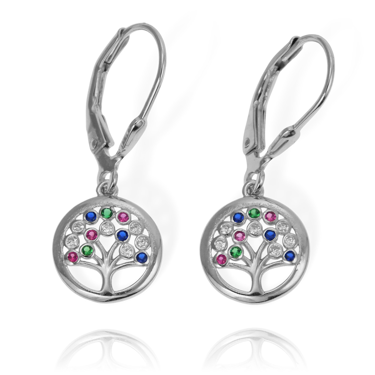 Srebrne Rodowane Kolczyki Drzewka z Kolorowymi Cyrkoniami