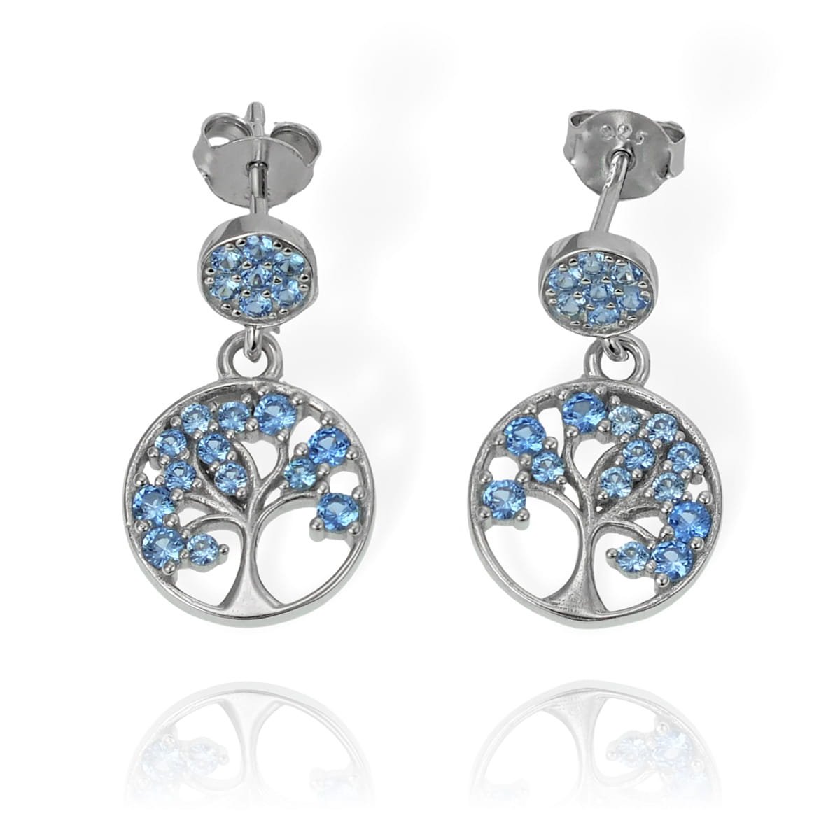 Srebrne Rodowane Kolczyki Drzewka z Niebieskimi Cyrkoniami
