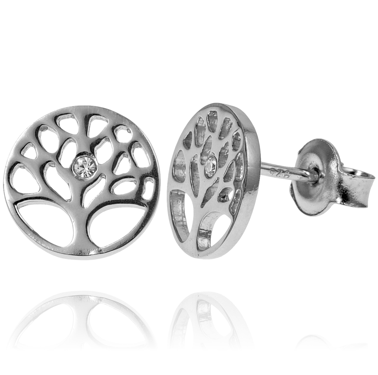 Srebrne Rodowane Kolczyki Drzewo z Cyrkonią !