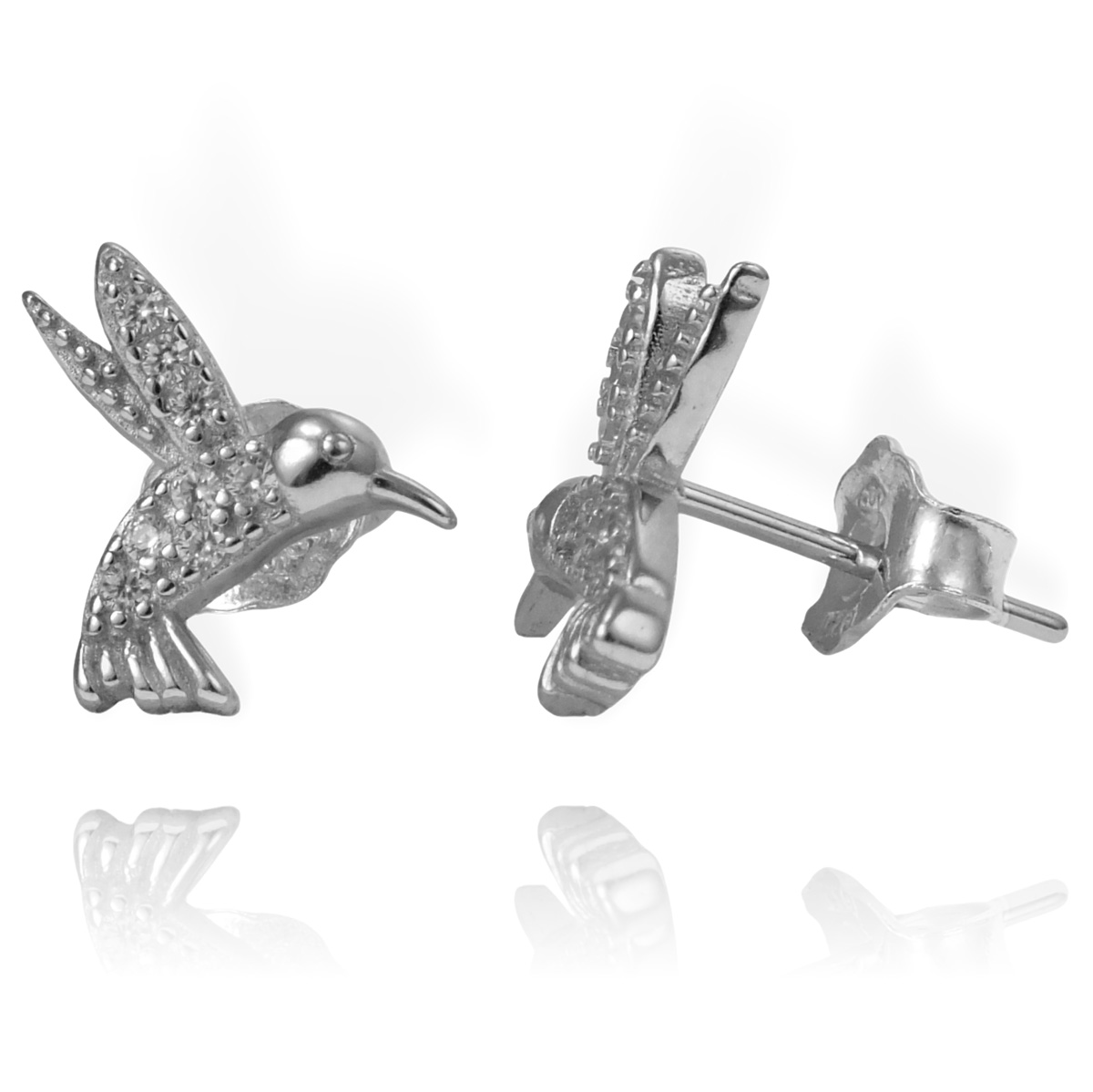 Srebrne Rodowane Kolczyki Kolibry Koliber z Cyrkoniami