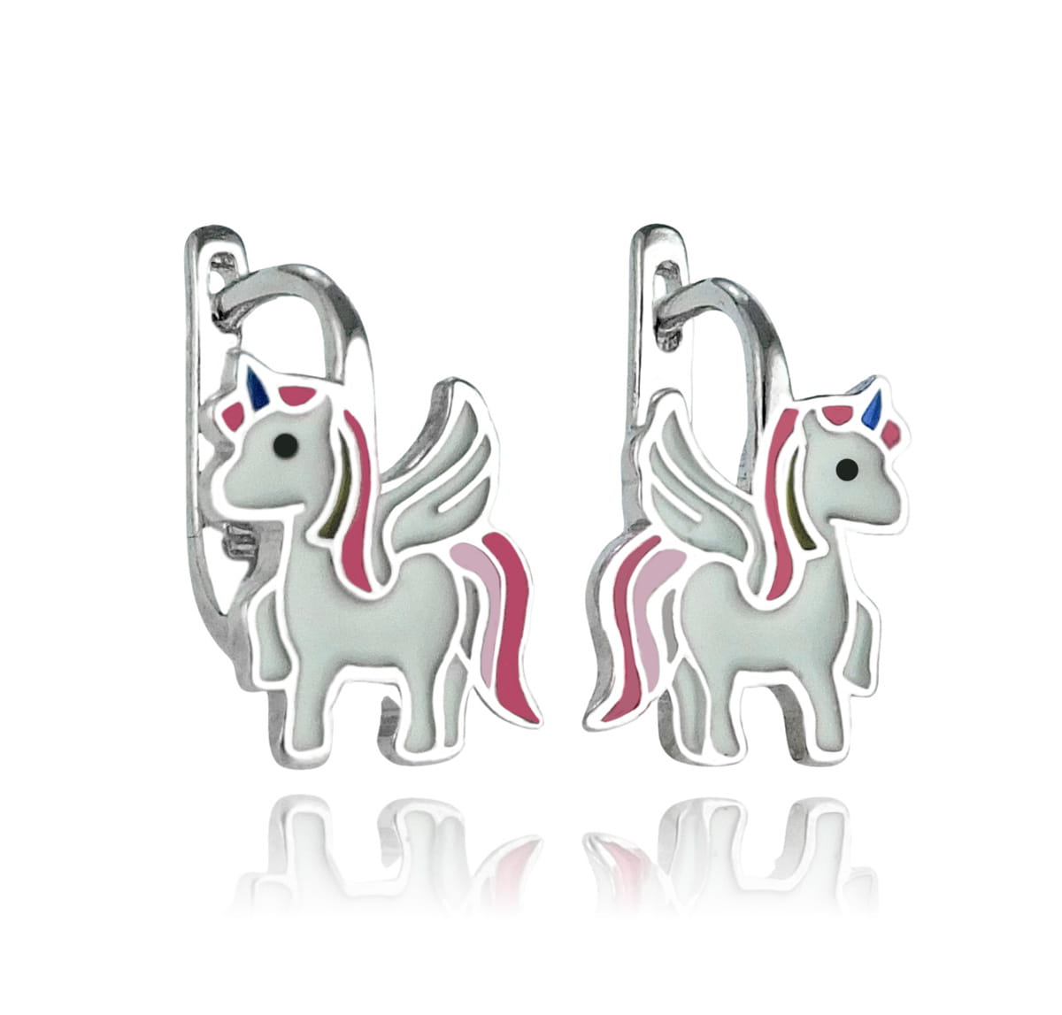 Srebrne Rodowane Kolczyki Koniki Jednorożce Jednorożec