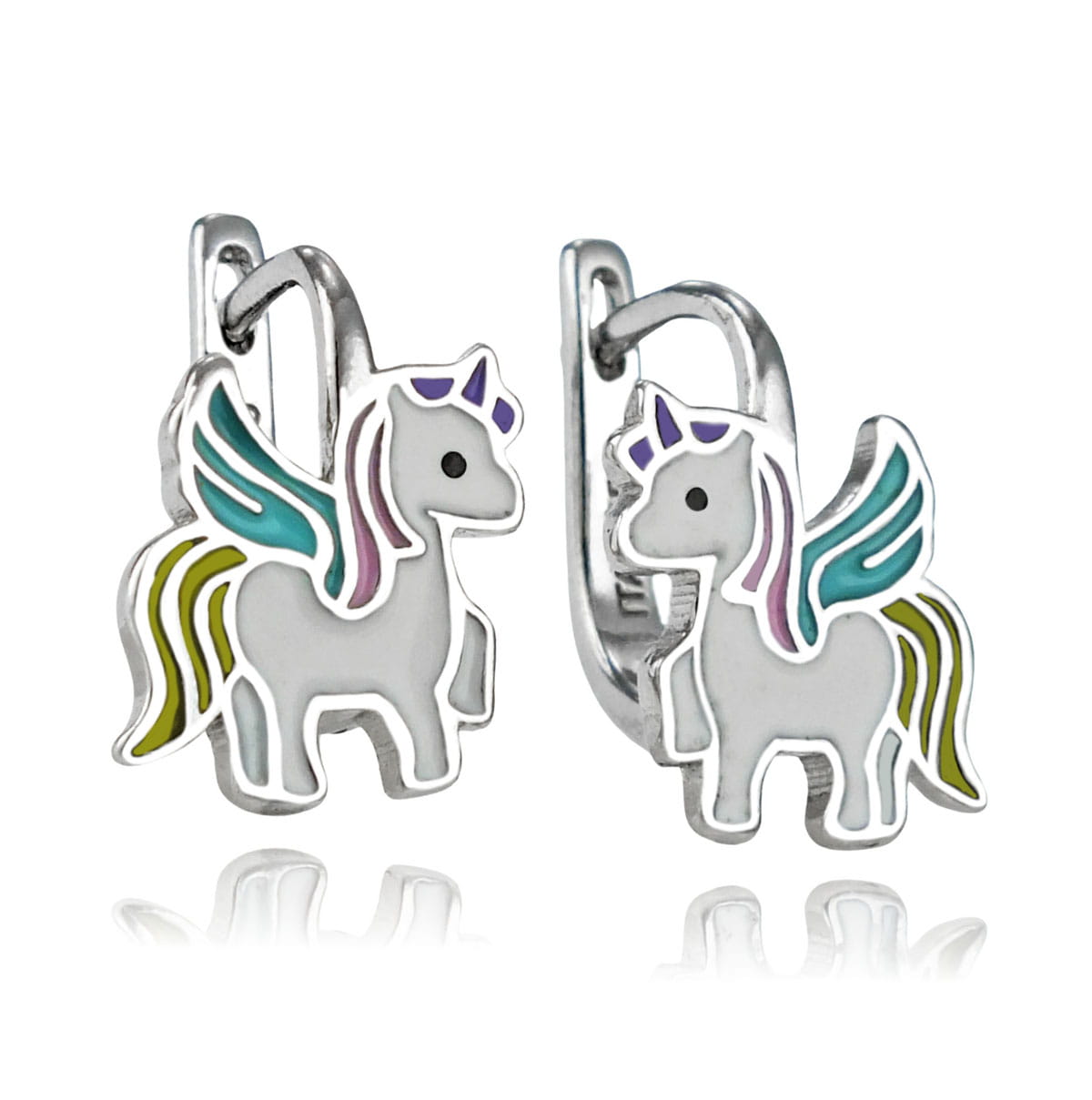 Srebrne Rodowane Kolczyki Koniki Jednorożce Jednorożec