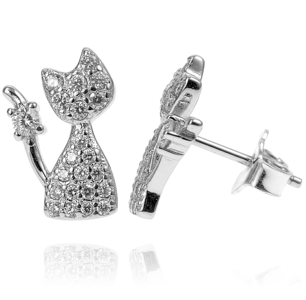 Srebrne Rodowane Kolczyki Kotki Kotek z Cyrkoniami !