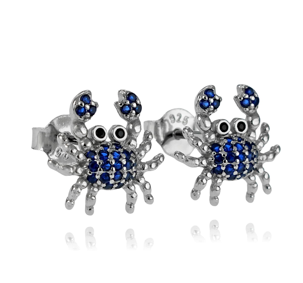 Srebrne Rodowane Kolczyki Kraby z Granatowymi Cyrkoniami