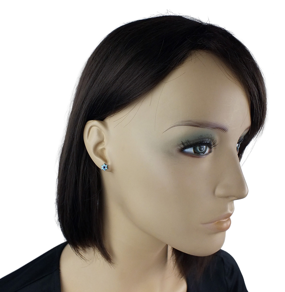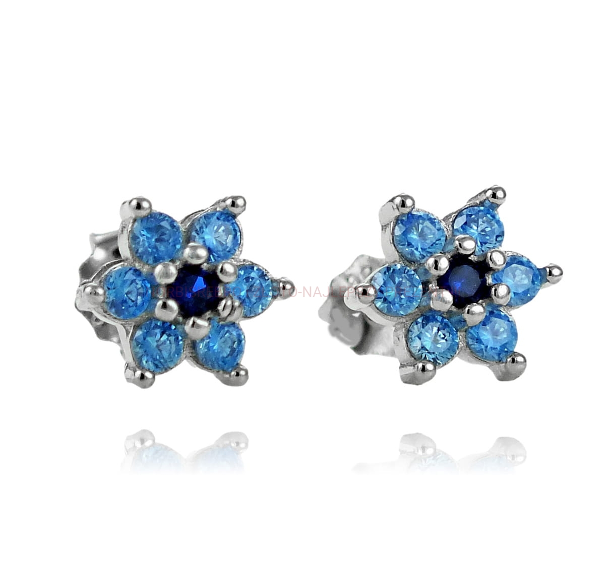 Srebrne Rodowane Kolczyki Kwiatuszki z Błękitnymi Cyrkoniami