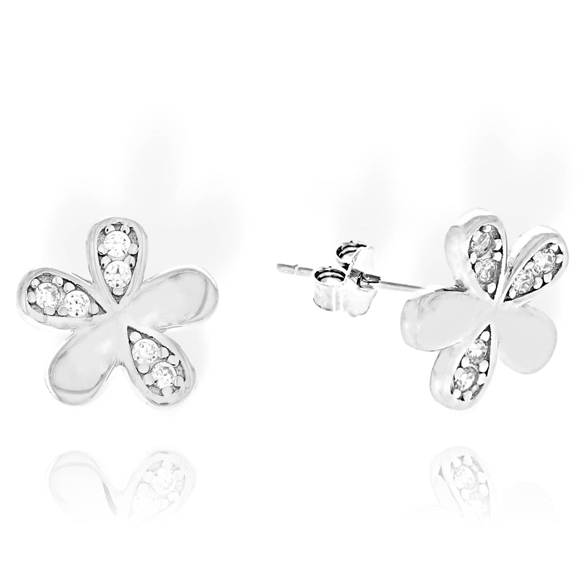 Srebrne Rodowane Kolczyki Kwiatuszki z Cyrkoniami