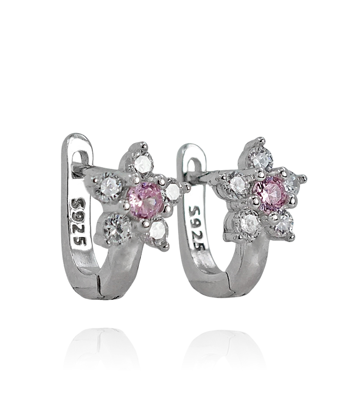 Srebrne Rodowane Kolczyki Kwiatuszki z Cyrkoniami na Angliku