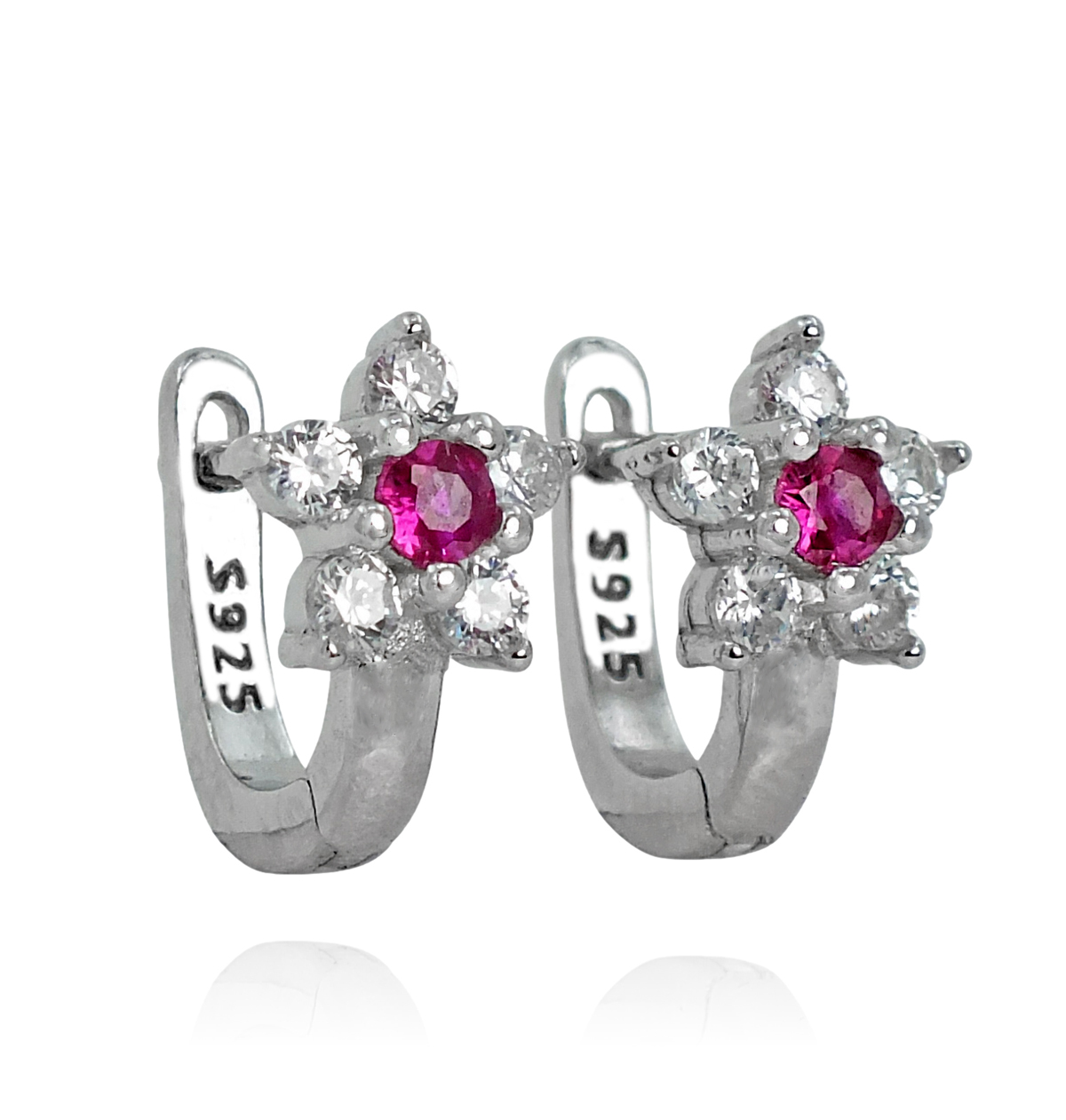 Srebrne Rodowane Kolczyki Kwiatuszki z Cyrkoniami na Angliku