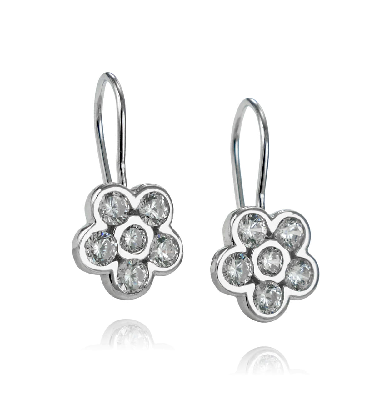 Srebrne Rodowane Kolczyki Kwiatuszki z Cyrkoniami na Biglu