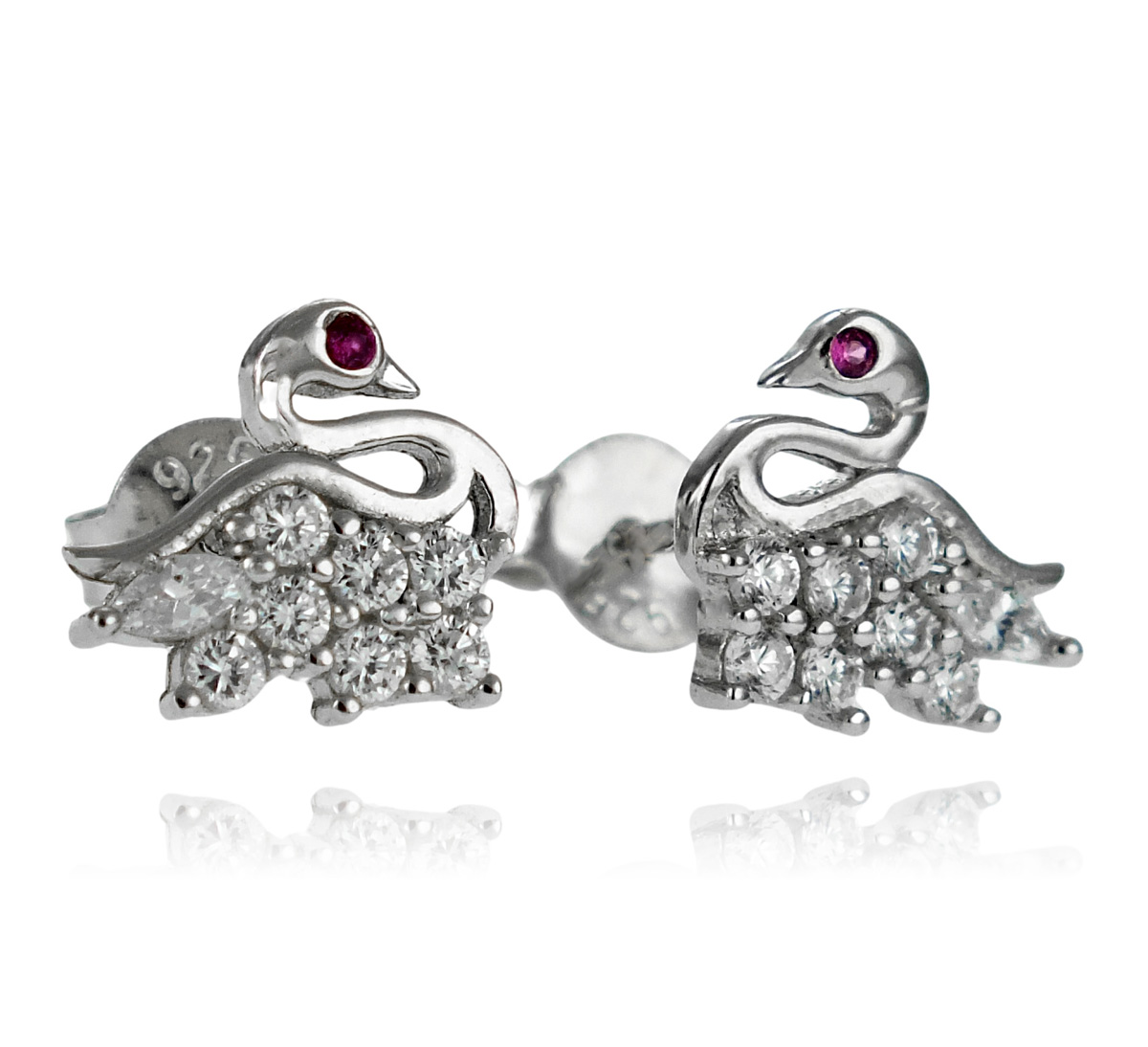 Srebrne Rodowane Kolczyki Łabędzie z Cyrkoniami na Sztyft !