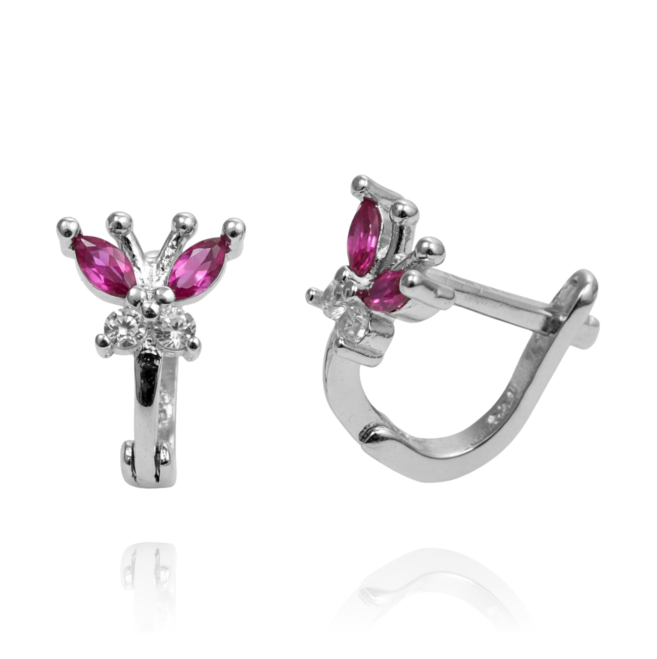 Srebrne Rodowane Kolczyki Motyle Motylki z Cyrkoniami