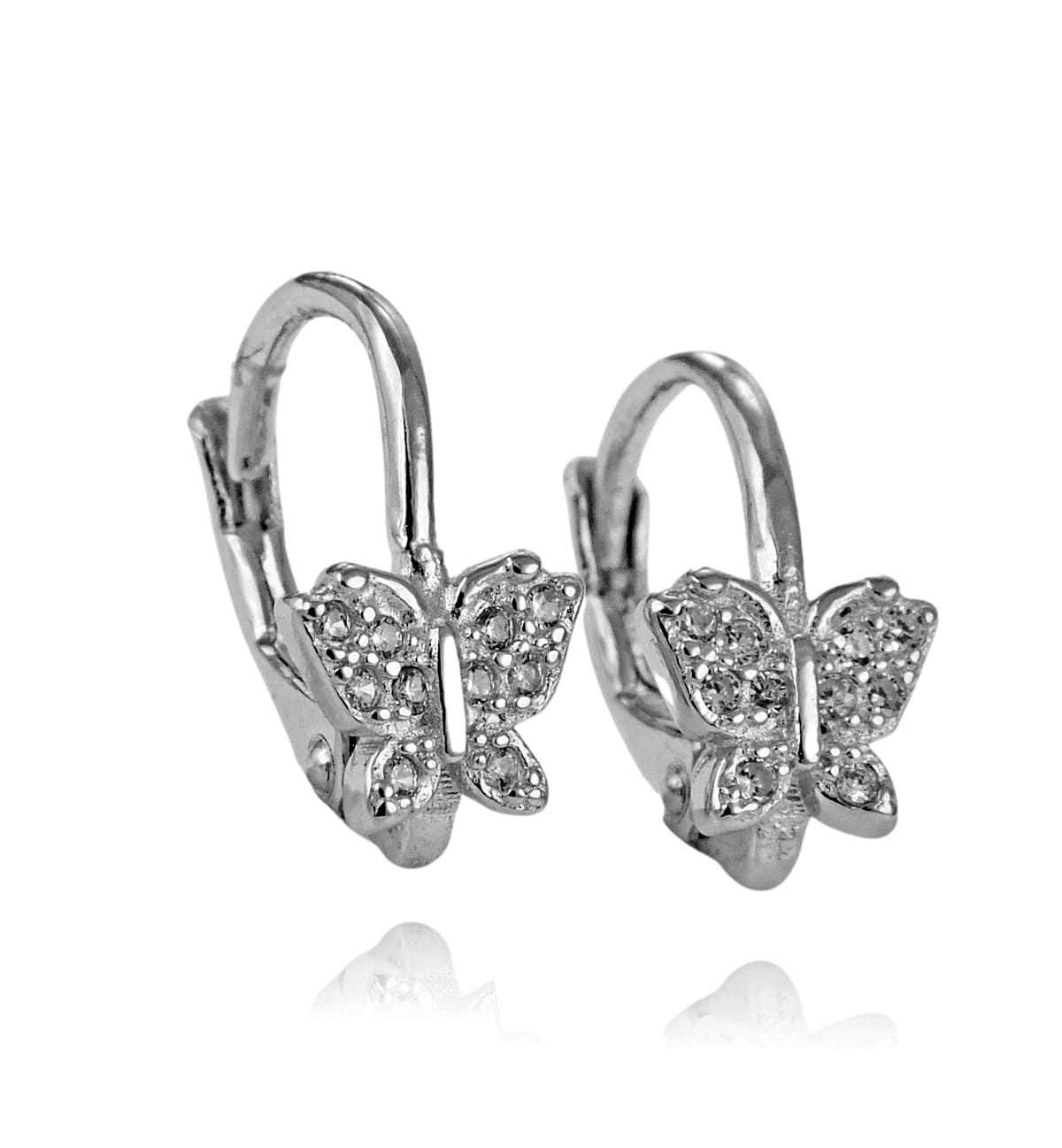Srebrne Rodowane Kolczyki Motylki z Cyrkoniami