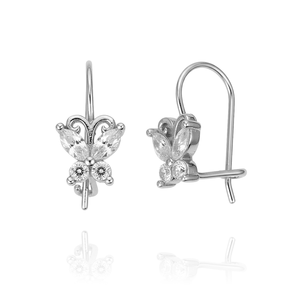 Srebrne Rodowane Kolczyki Motylki z Cyrkoniami