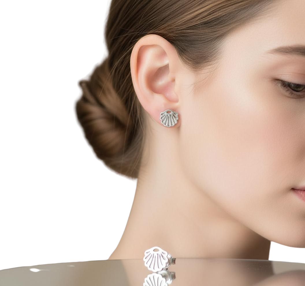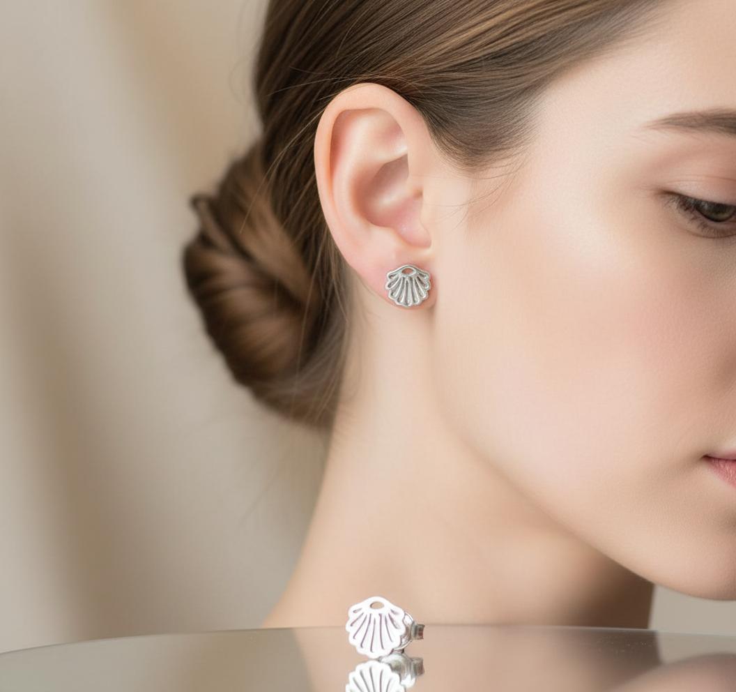Srebrne Rodowane Kolczyki Muszle Muszelki
