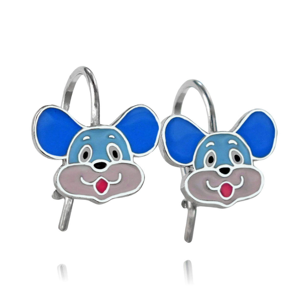 Srebrne Rodowane Kolczyki Myszki na Biglu