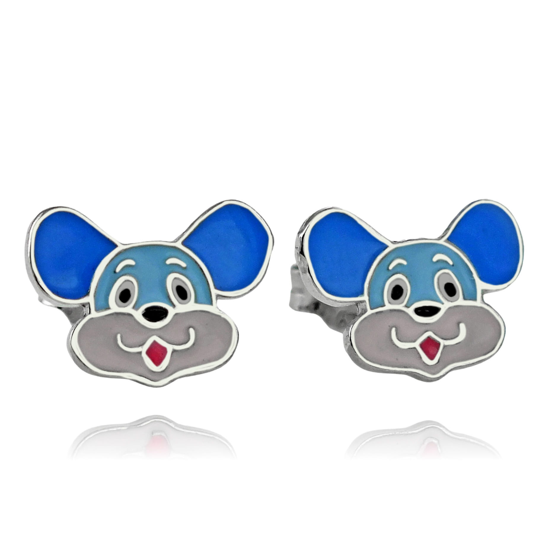 Srebrne Rodowane Kolczyki Myszki na sztyft