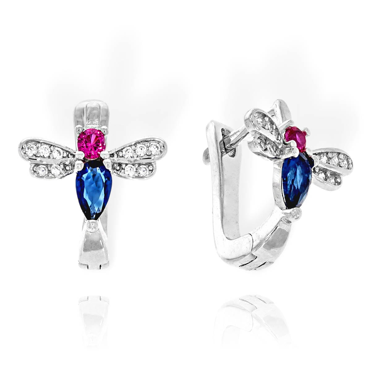 Srebrne Rodowane Kolczyki Owady, Muchy z Cyrkoniami