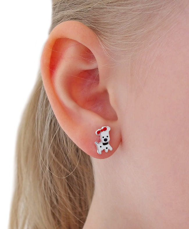 Srebrne Rodowane Kolczyki Pieski Piesek na sztyft