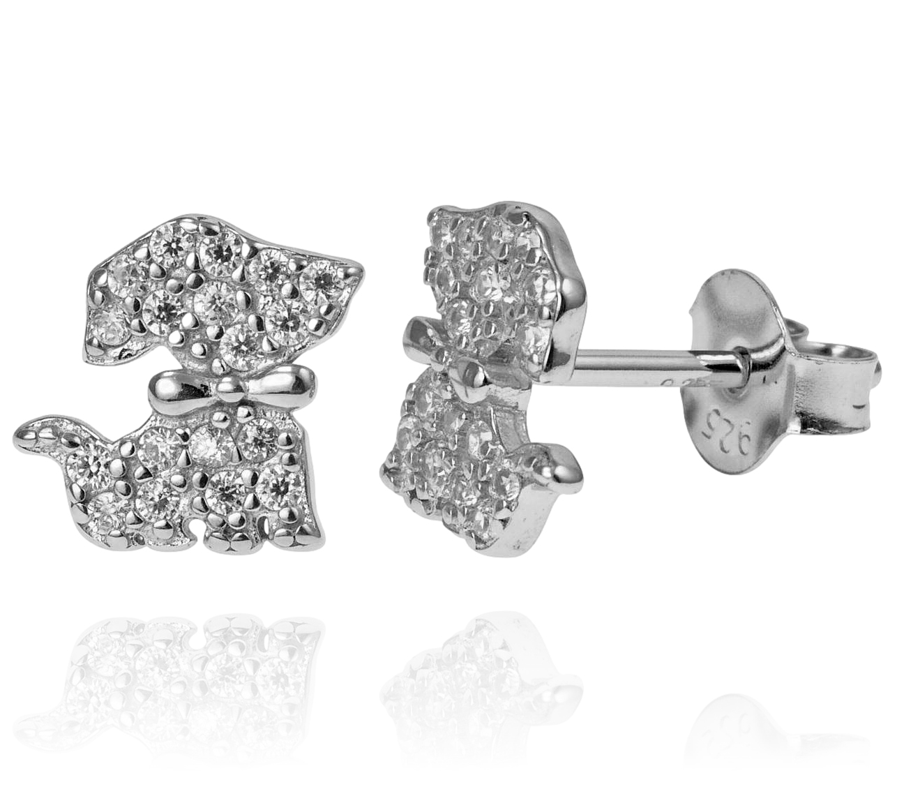 Srebrne Rodowane Kolczyki Pieski z Cyrkoniami !