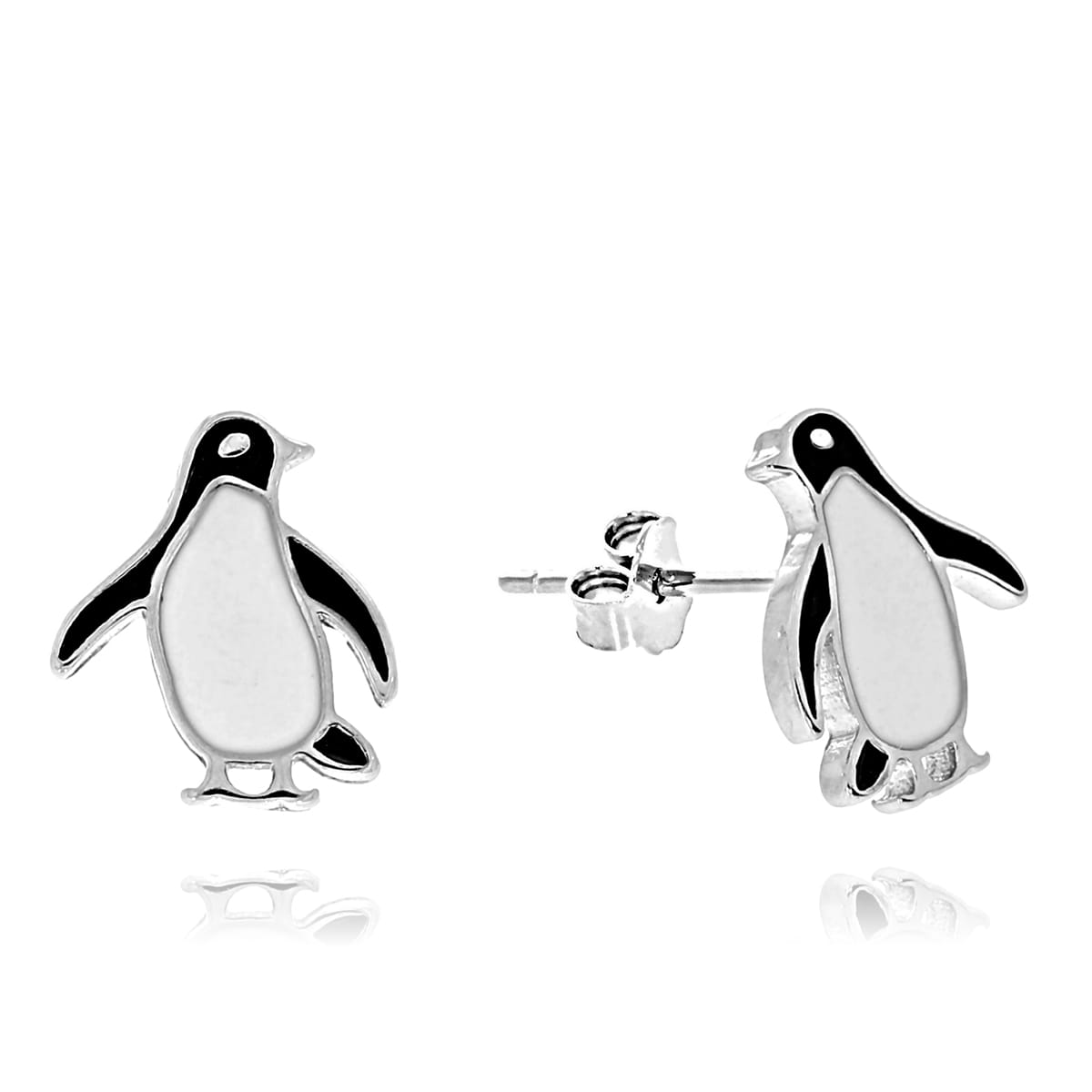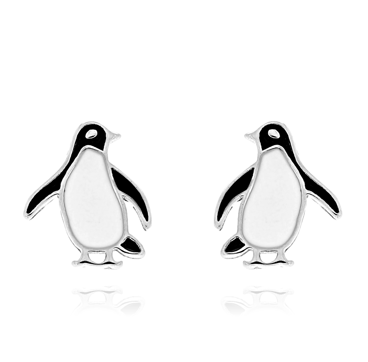 Srebrne Rodowane Kolczyki Pingwiny