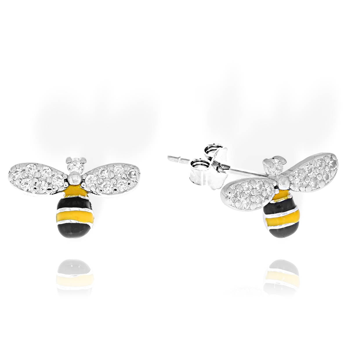 Srebrne Rodowane Kolczyki Pszczółki z Cyrkoniami