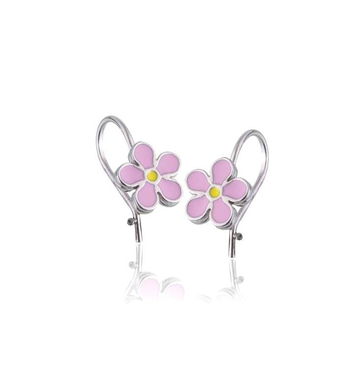 Srebrne Rodowane Kolczyki Różowe Kwiatuszki na Biglu Zamkniętym