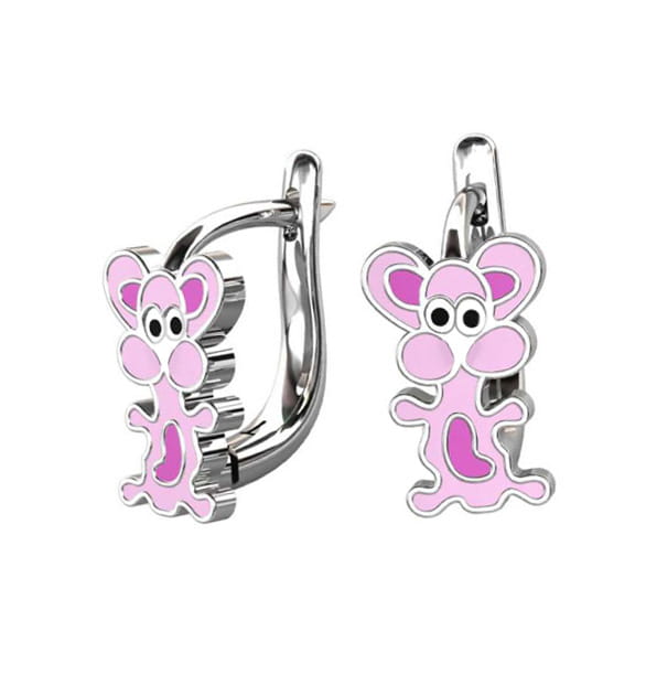 Srebrne Rodowane Kolczyki Różowe Myszki na Angliku !