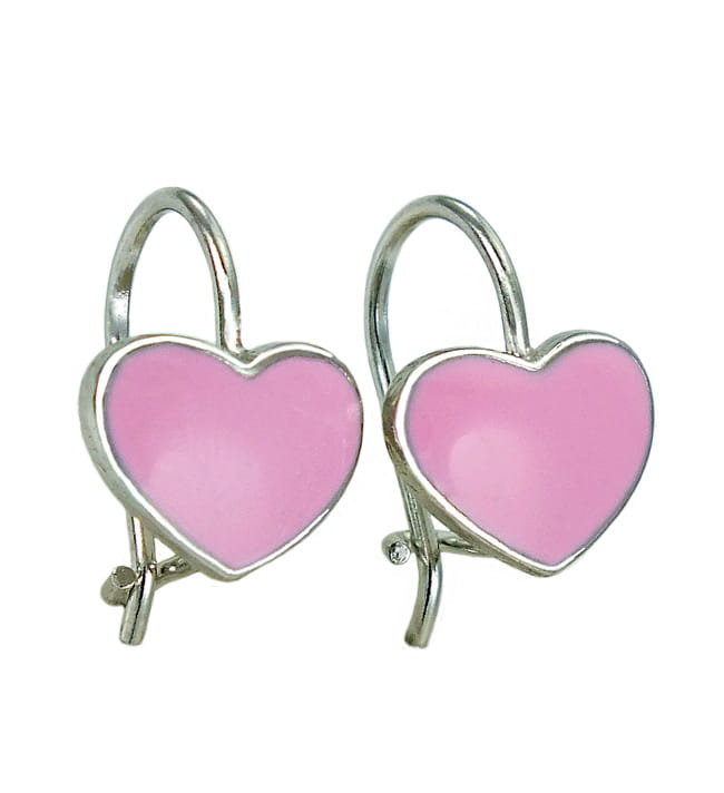 Srebrne Rodowane Kolczyki Różowe Serca na Biglu !!!