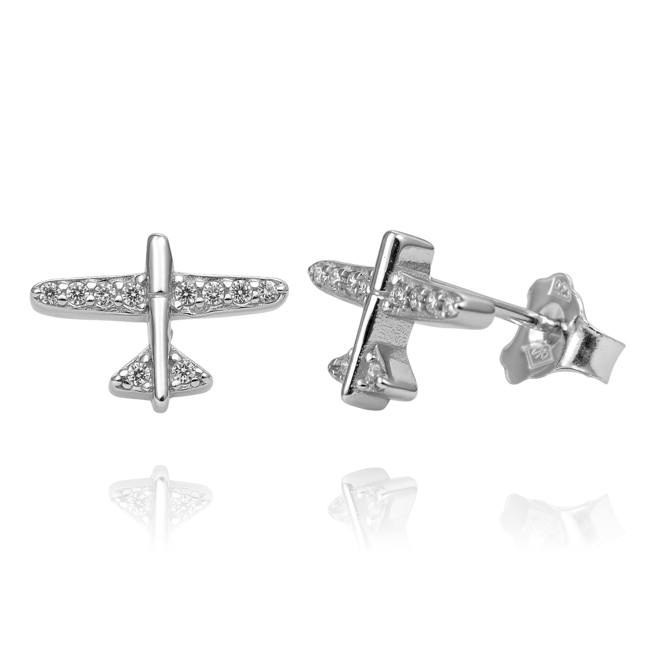 Srebrne Rodowane Kolczyki Samoloty z Cyrkoniami !