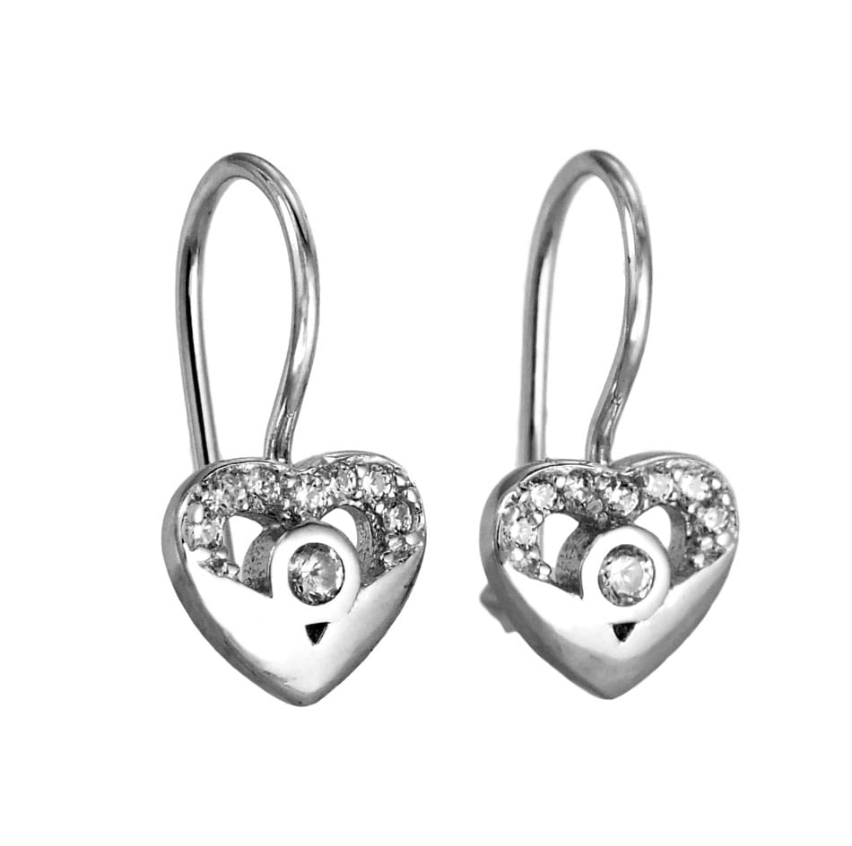 Srebrne Rodowane Kolczyki Serca z Cyrkoniami na Biglu !
