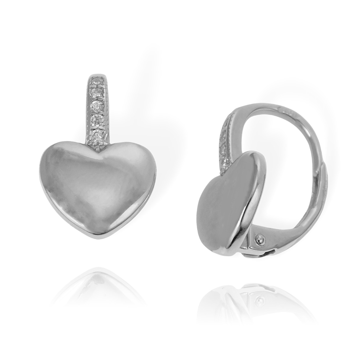 Srebrne Rodowane Kolczyki Serca z Cyrkoniami
