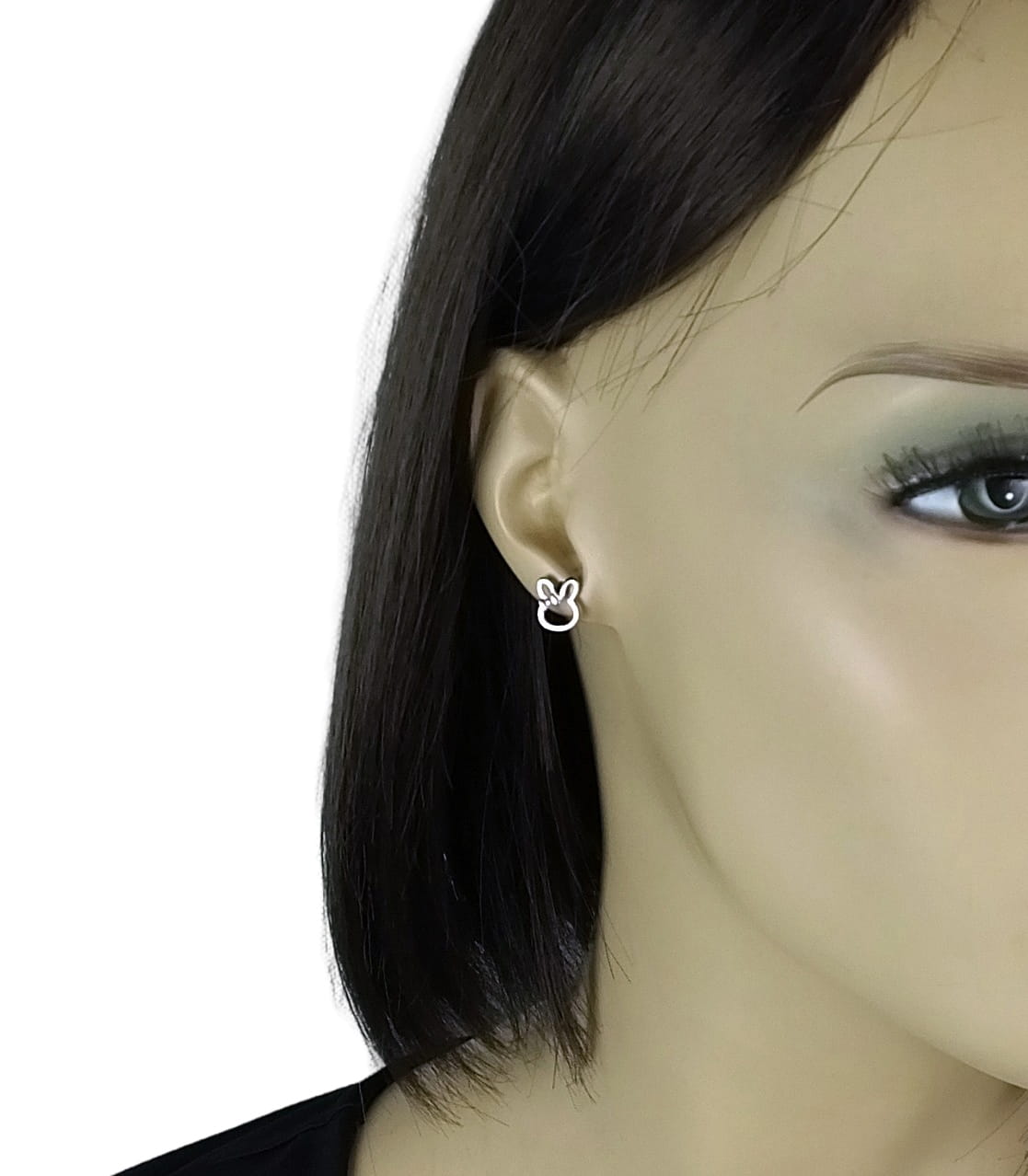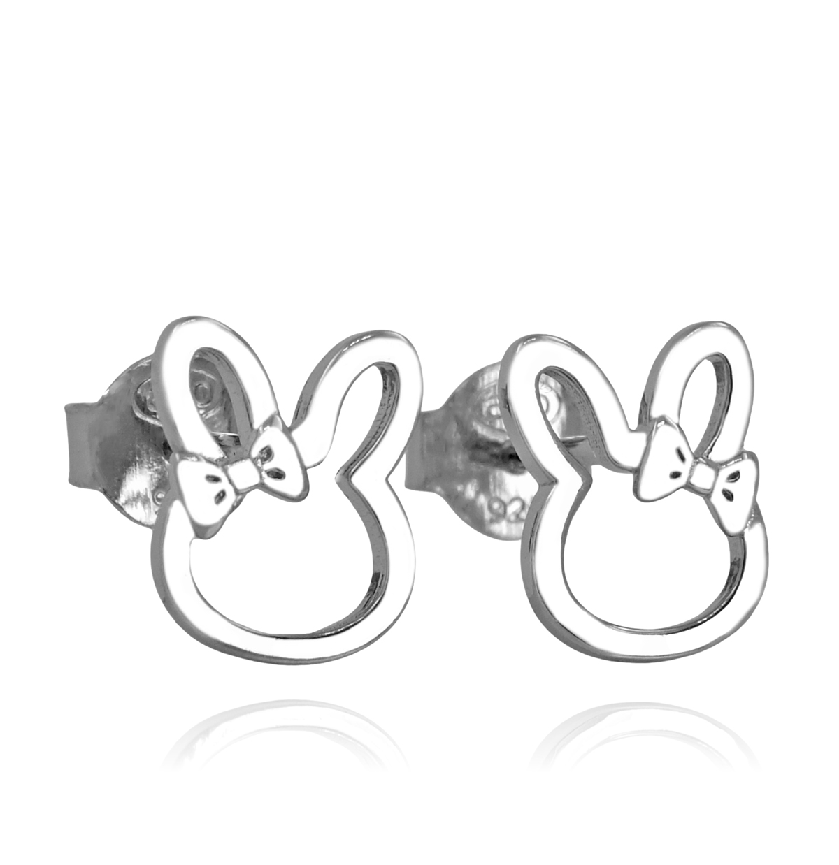 Srebrne Rodowane Kolczyki Zajączki Króliczki z Kokardkami