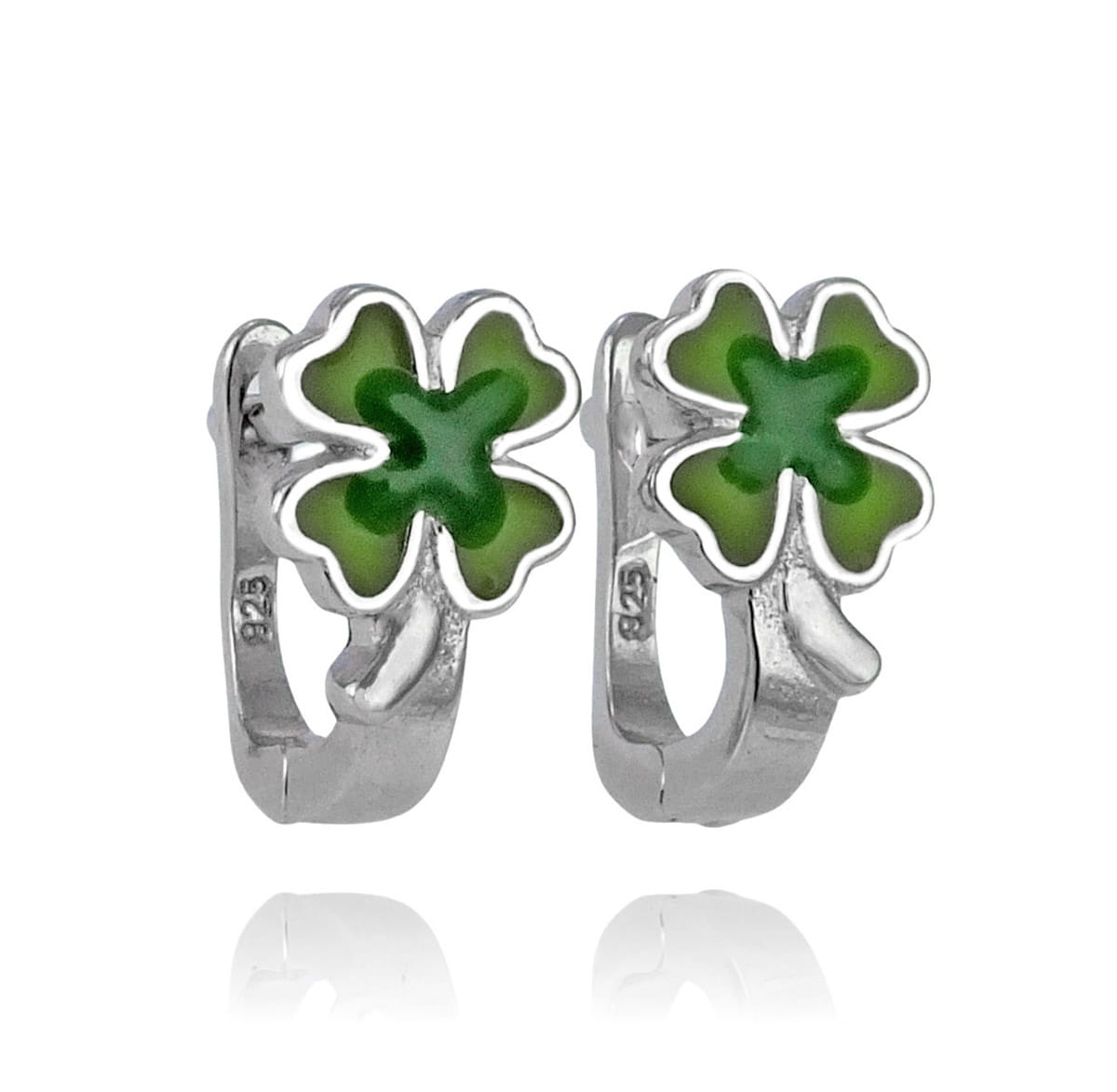 Srebrne Rodowane Kolczyki Zielone Koniczynki na Angliku !