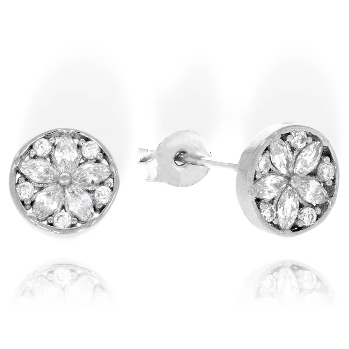 Srebrne Rodowane Okrągłe Kolczyki Kwiatuszki z Cyrkoniami