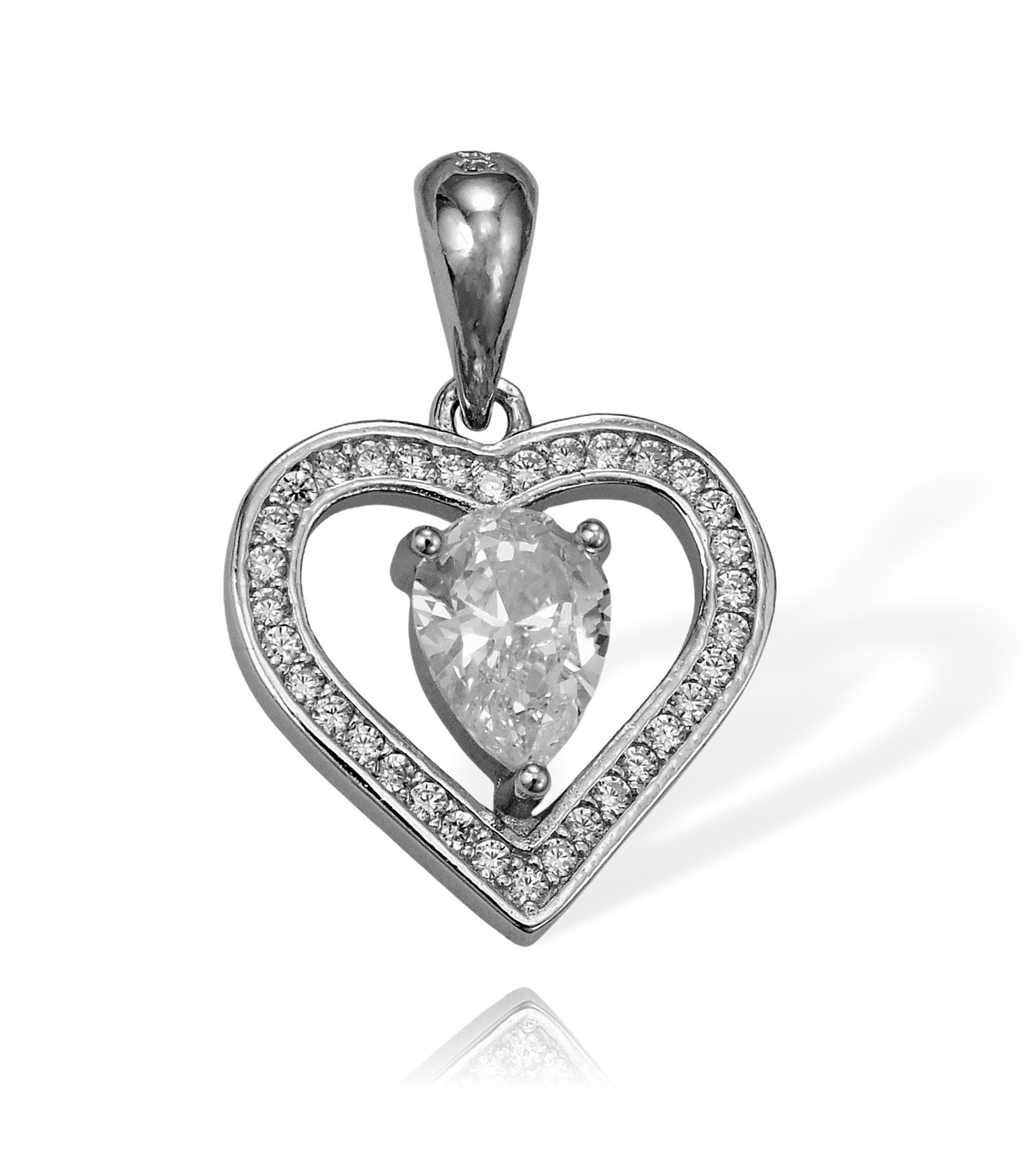 Srebrne Rodowane Serce z Cyrkoniami