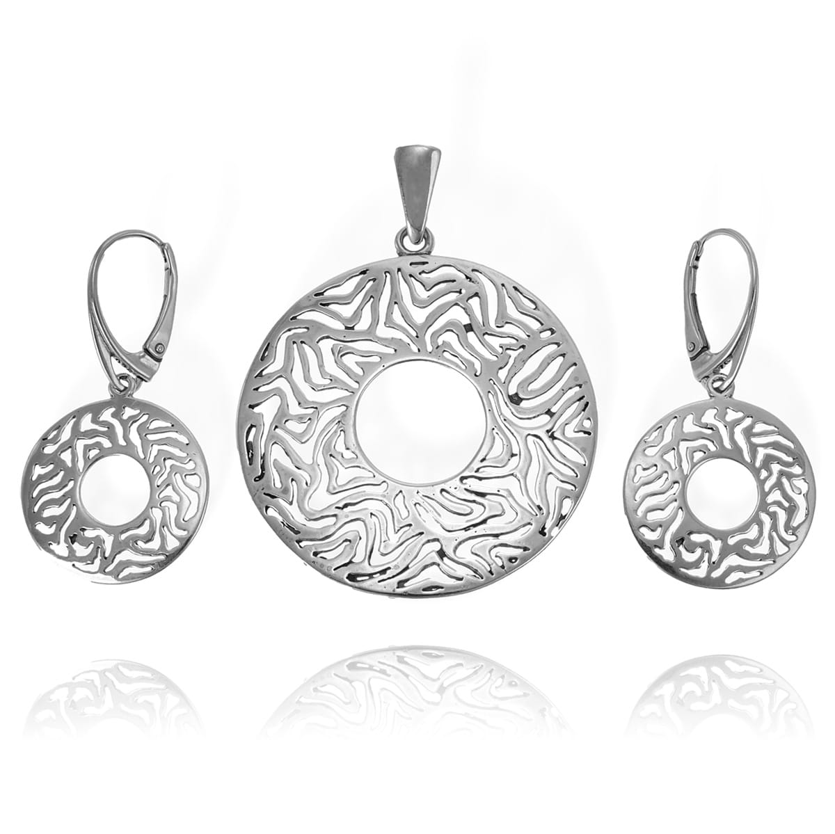 Srebrny Ażurowy Fantazyjny Komplet Kółka