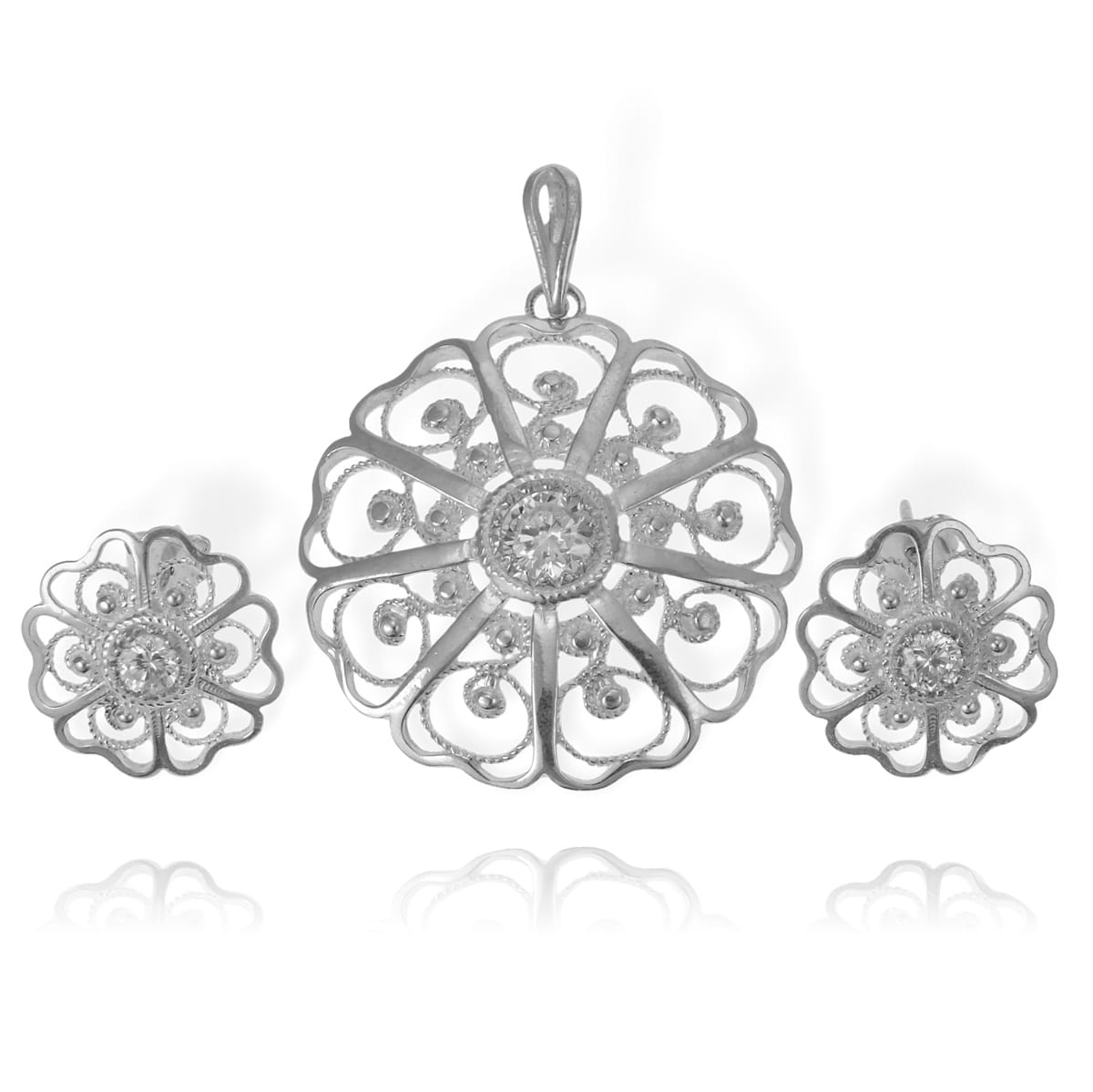 Srebrny Ażurowy Komplet z Cyrkoniami!