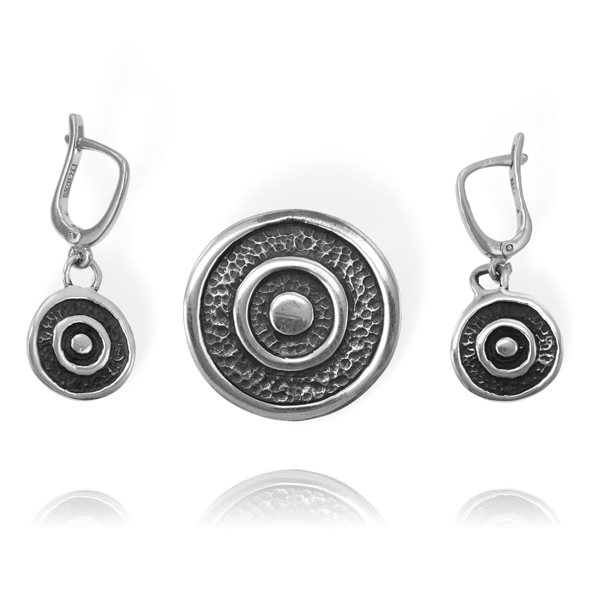 Srebrny Ażurowy Oksydowany Komplet z Kółka, Kółeczka, Okręgi