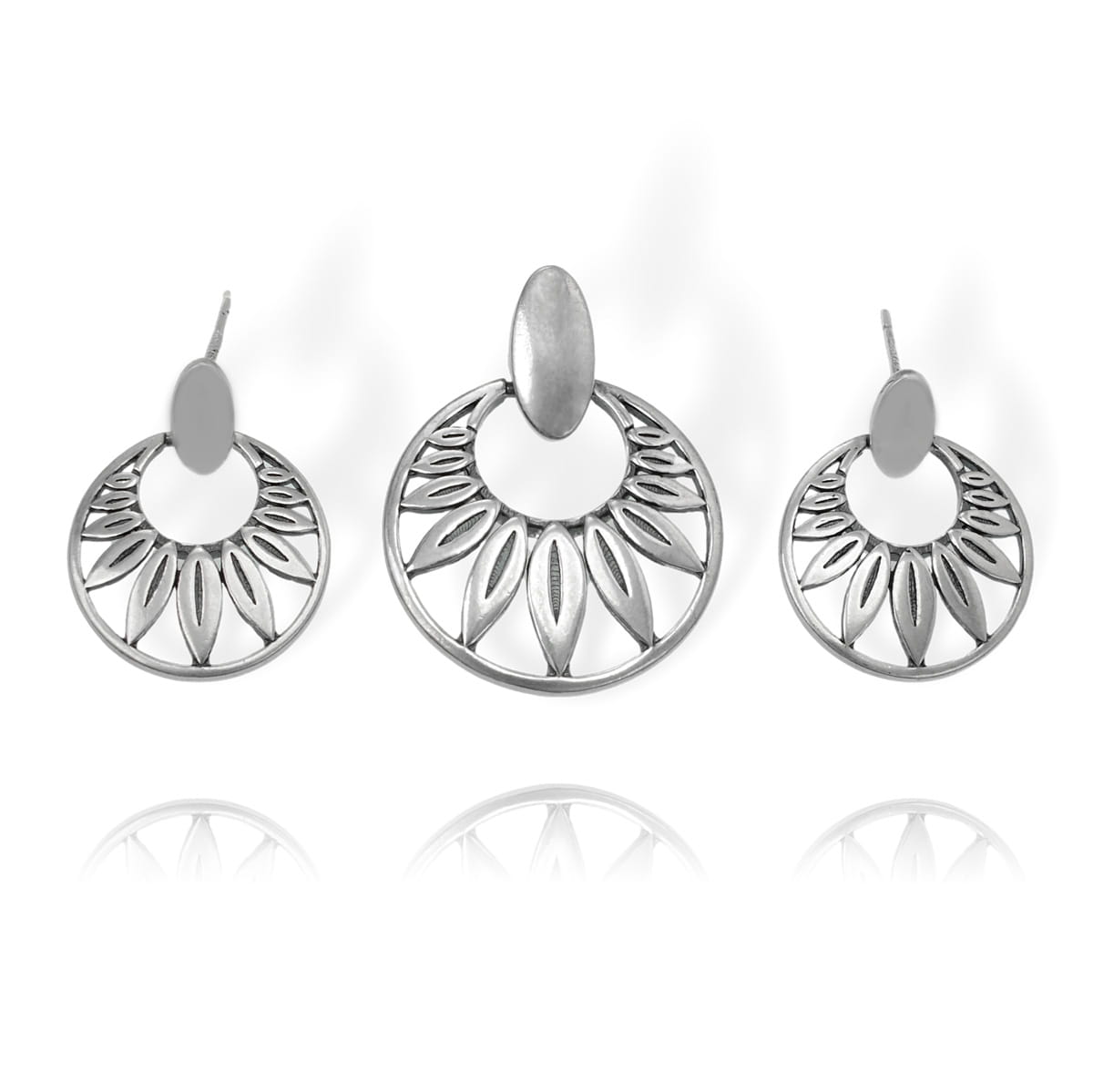 Srebrny Ażurowy Oksydowany Komplet Listki