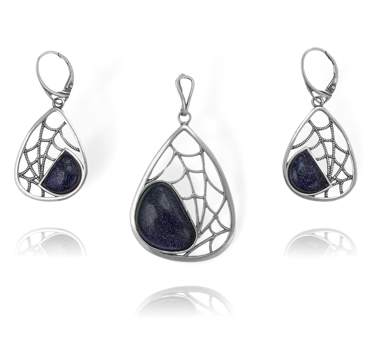 Srebrny Ażurowy Oksydowany Komplet Pajęczyna z Nocą Kairu