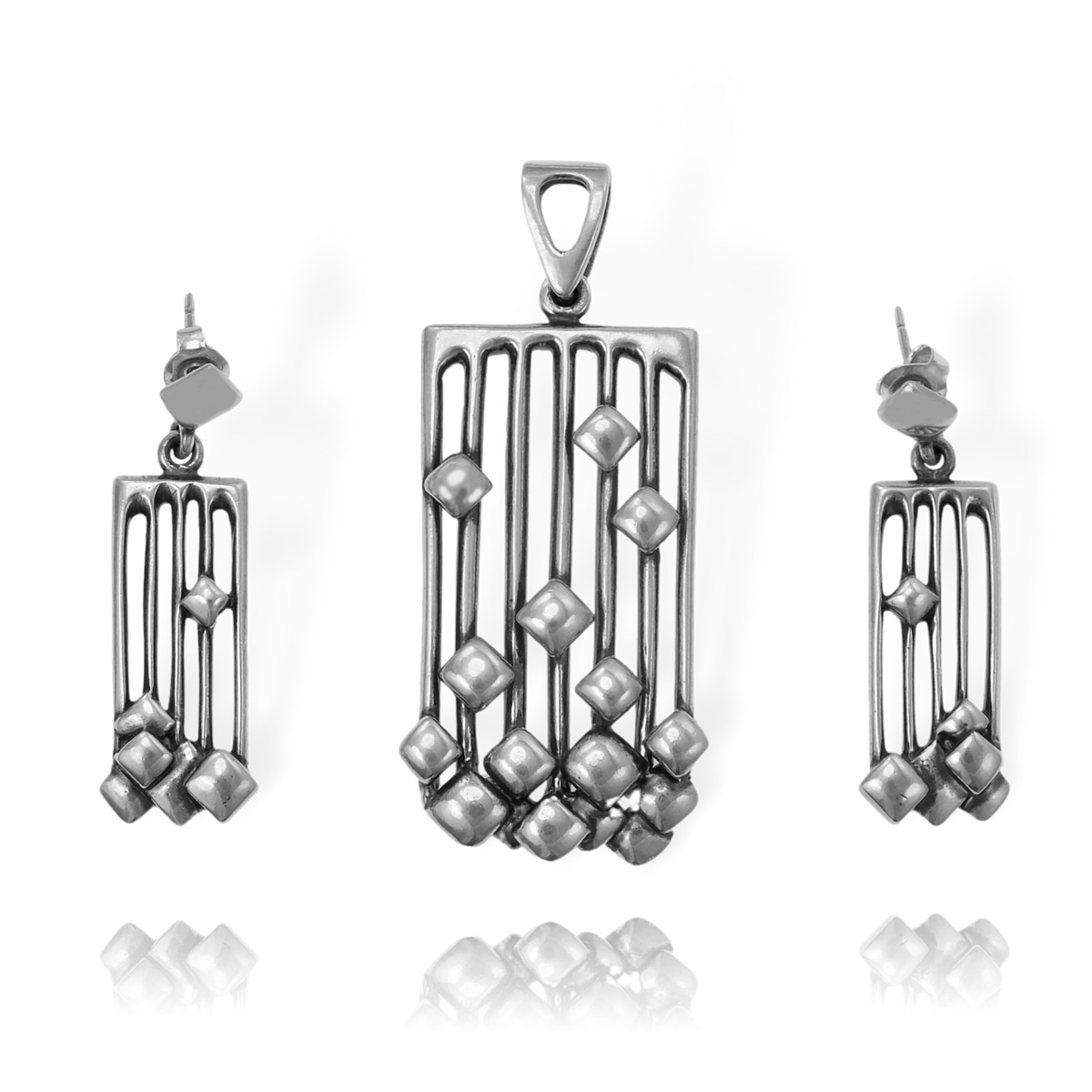Srebrny Ażurowy Oksydowany Komplet z Ciekawym Wzorem