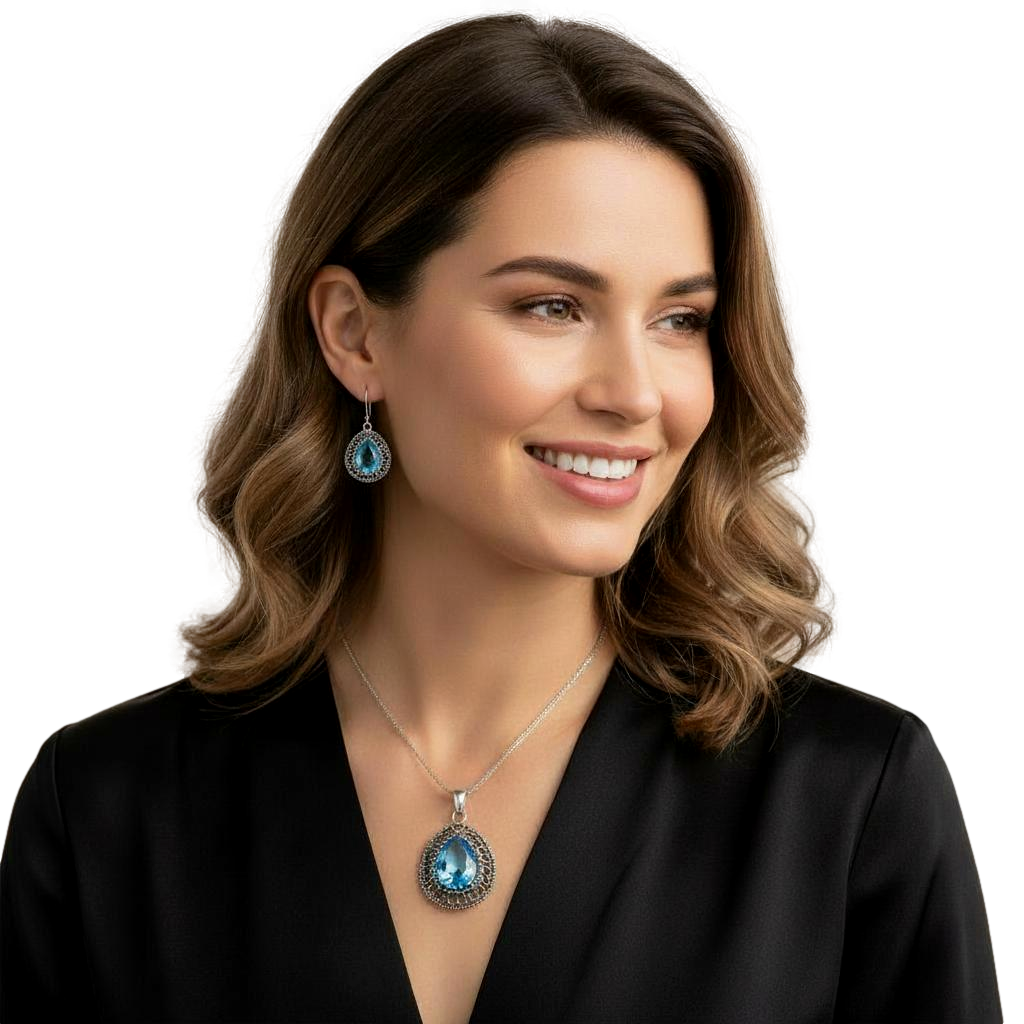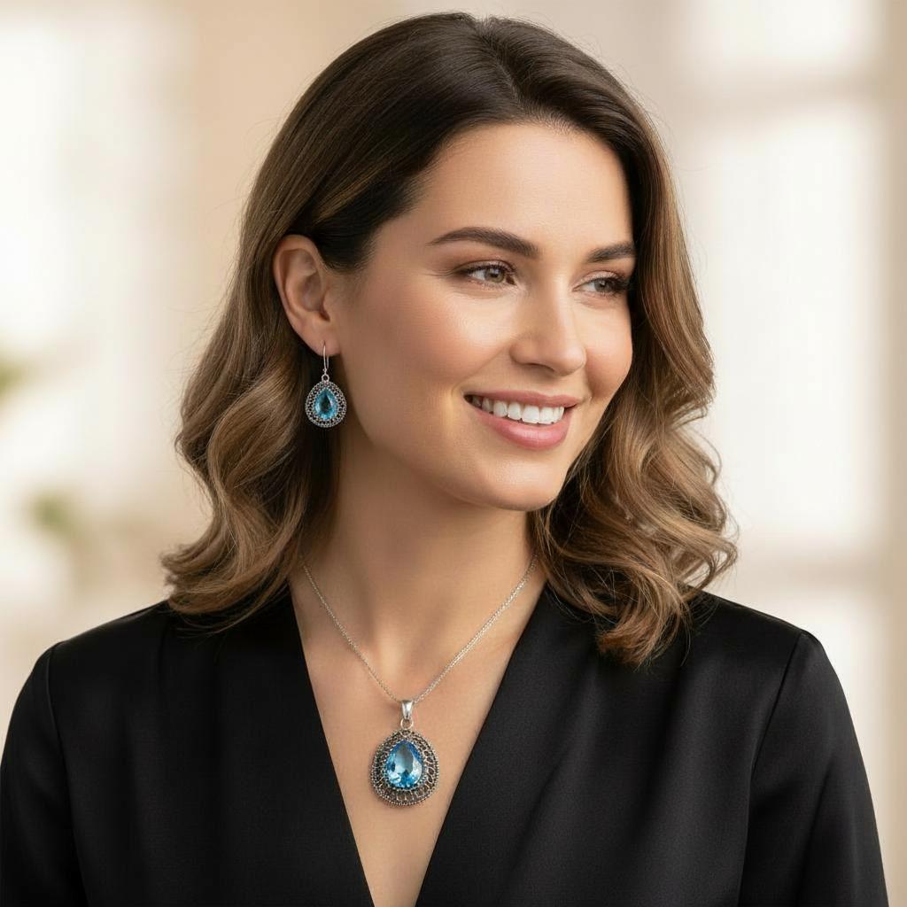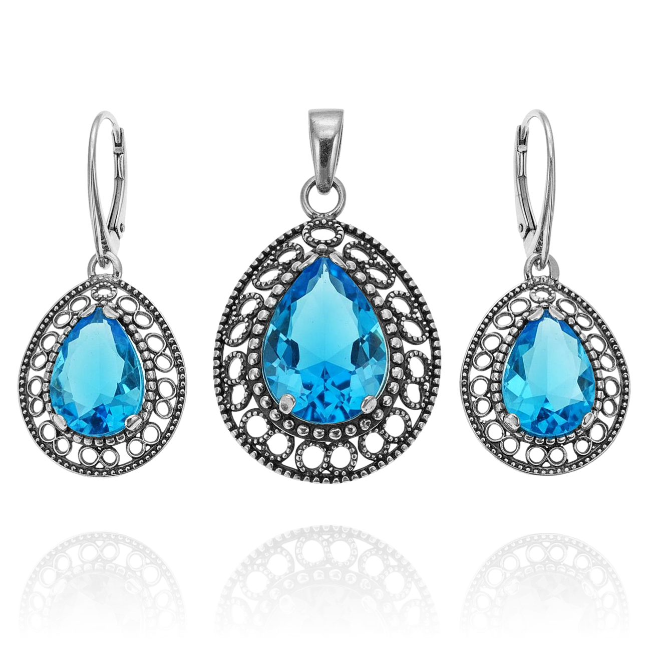 Srebrny Ażurowy Oksydowany Komplet z Cyrkoniami