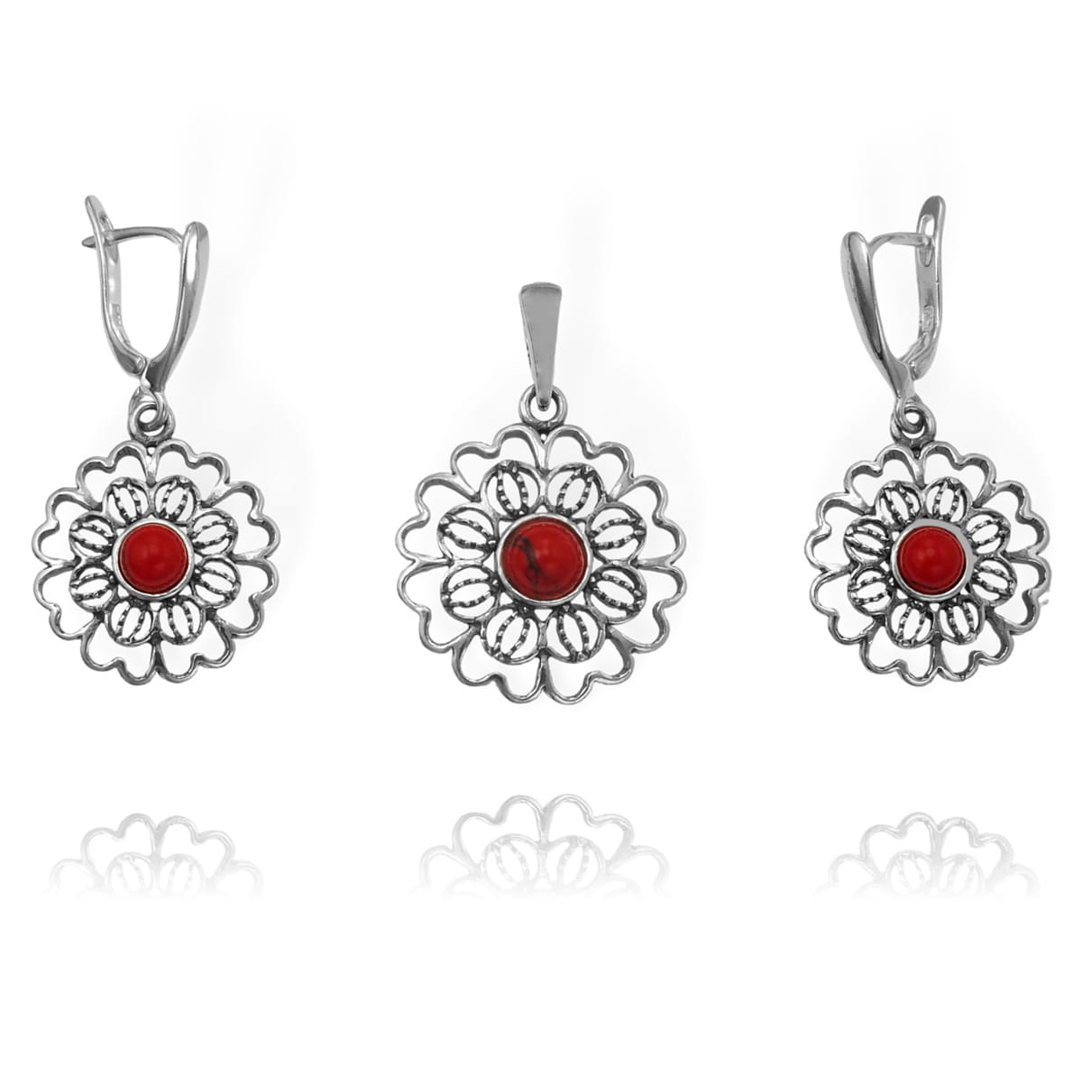 Srebrny Ażurowy Oksydowany Komplet z Jaspisem