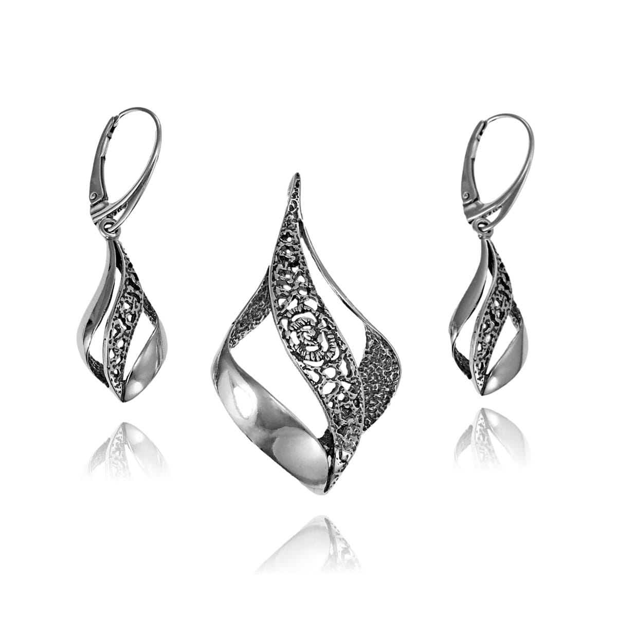Srebrny Ażurowy Oksydowany Komplet