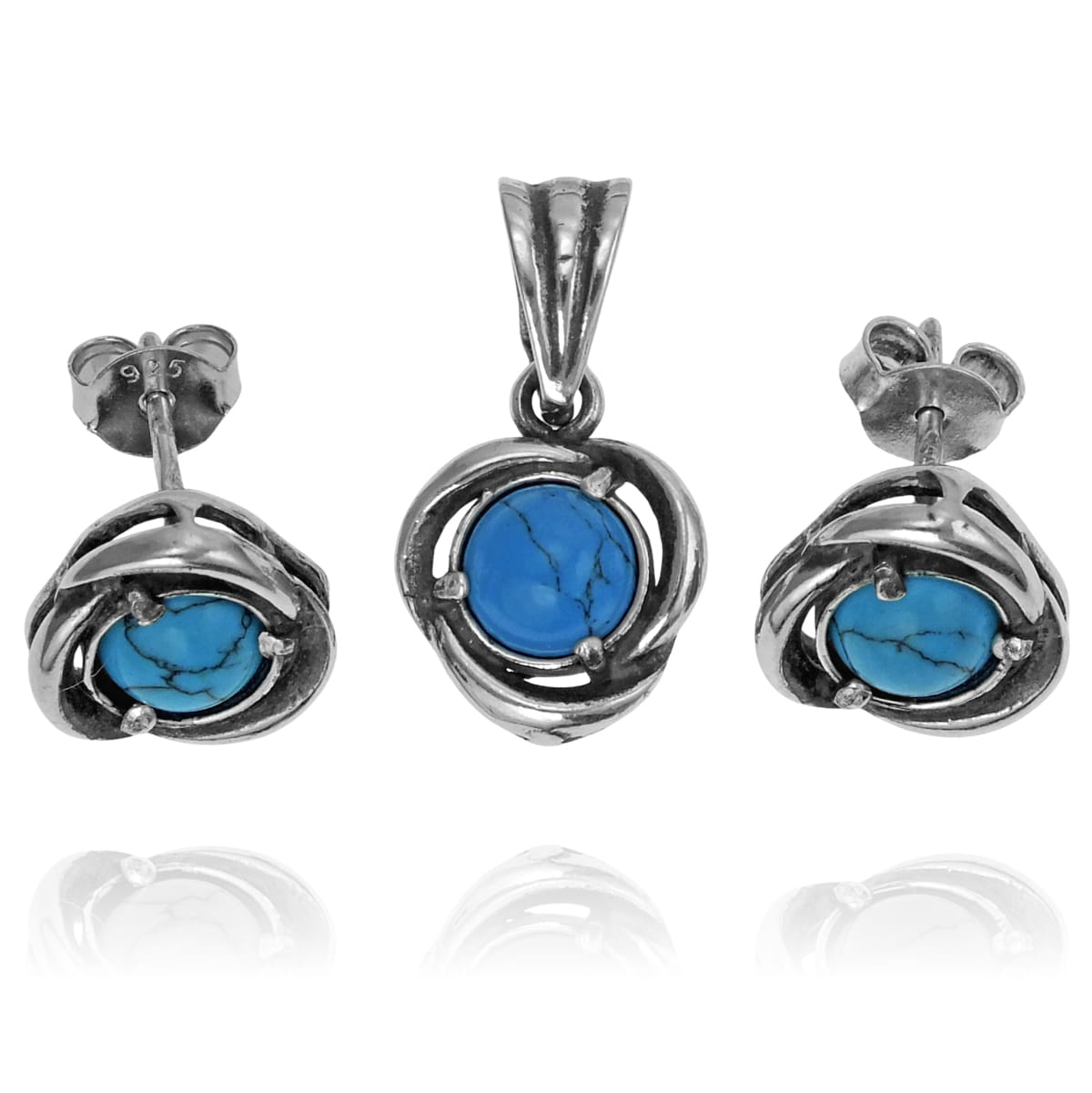 Srebrny Delikatny Oksydowany Komplet z Turkusem !