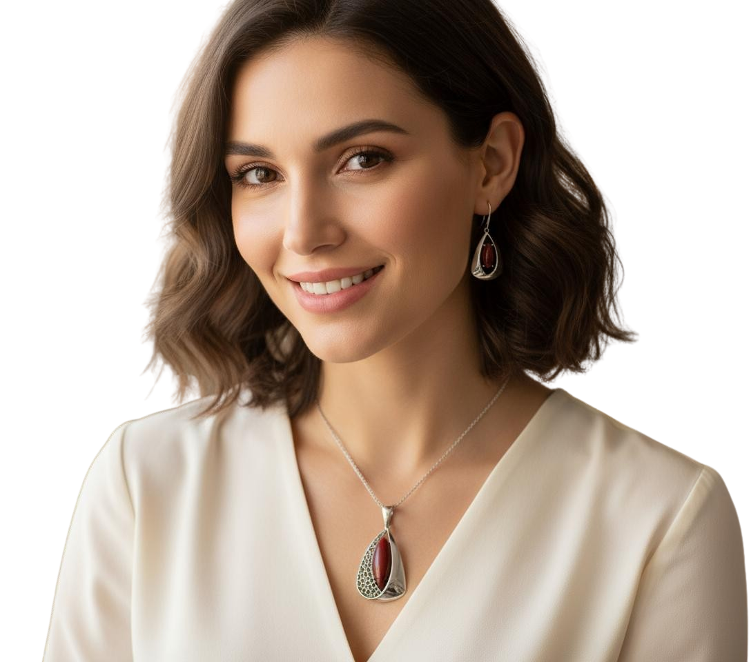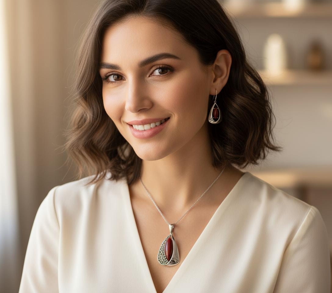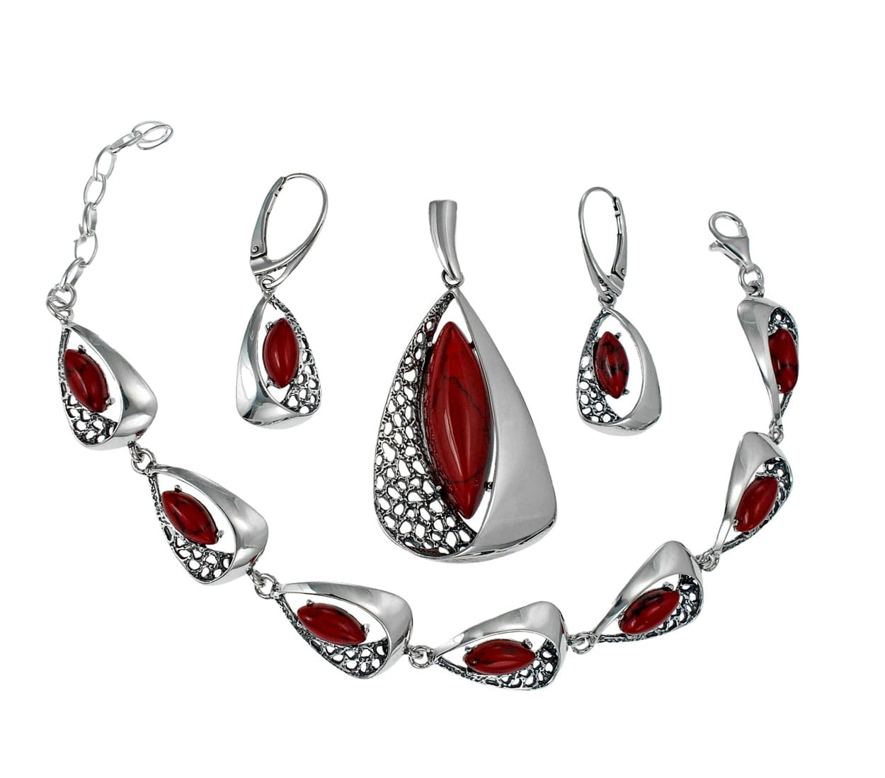 Srebrny Efektowny Oksydowany Komplet z Jaspisem Koralowym
