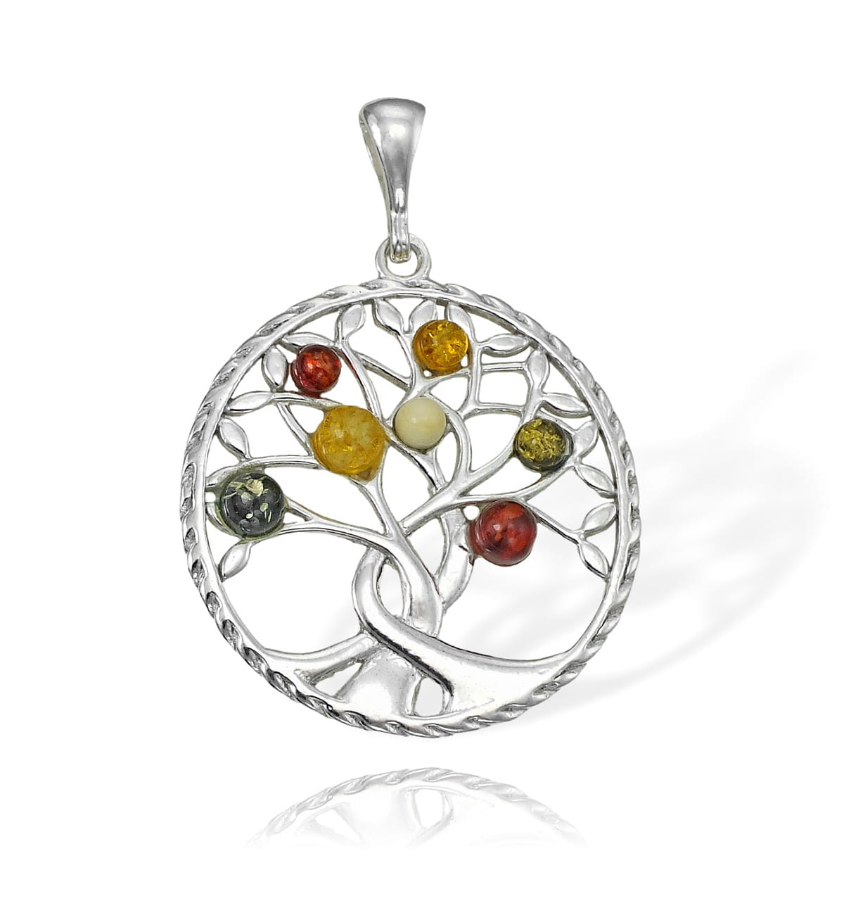 Srebrny Efektowny Wisiorek Drzewko z Bursztynem Bursztynami