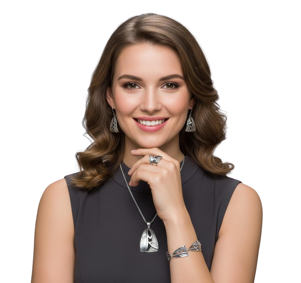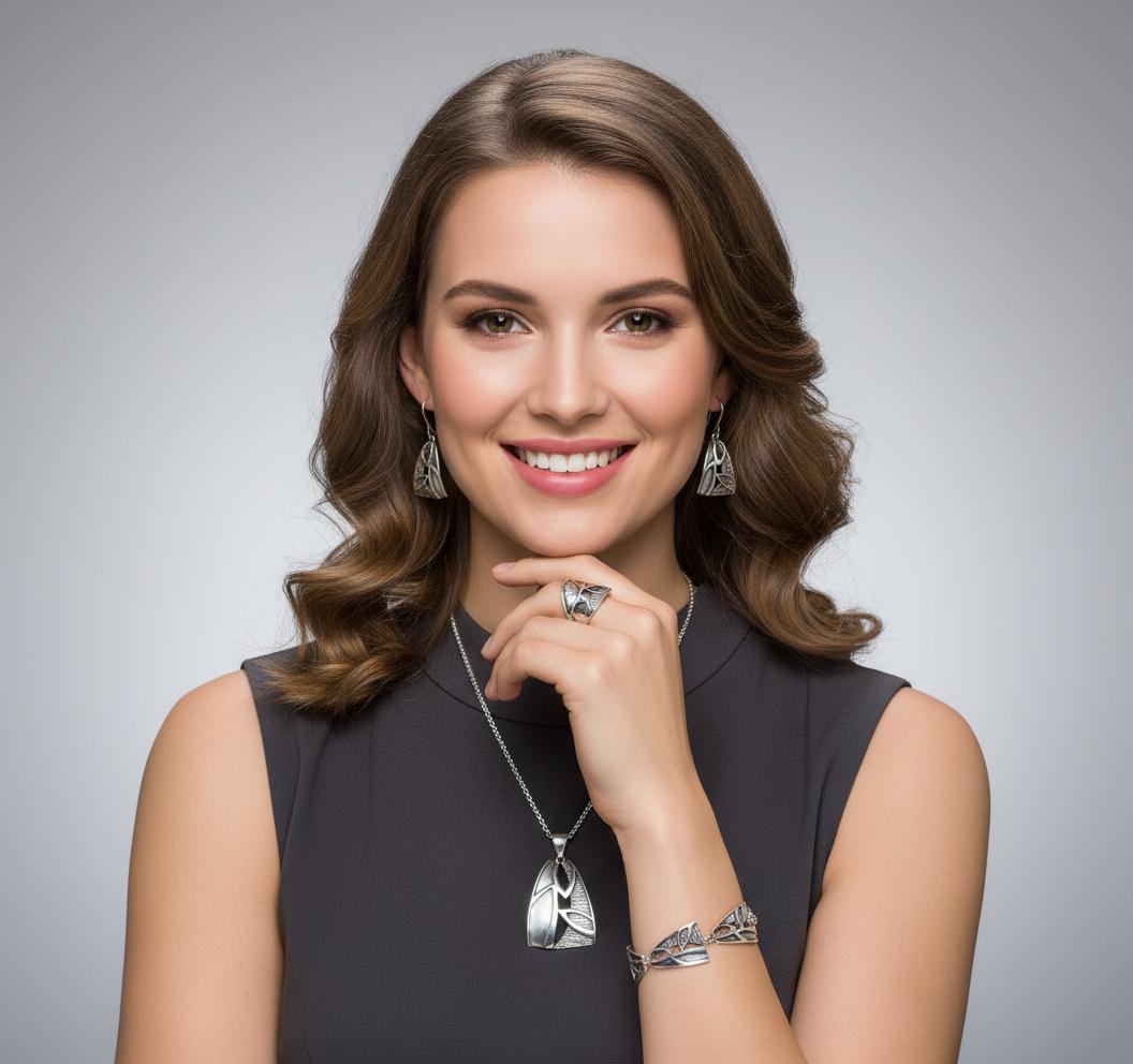 Srebrny Fantazyjny Oksydowany Komplet