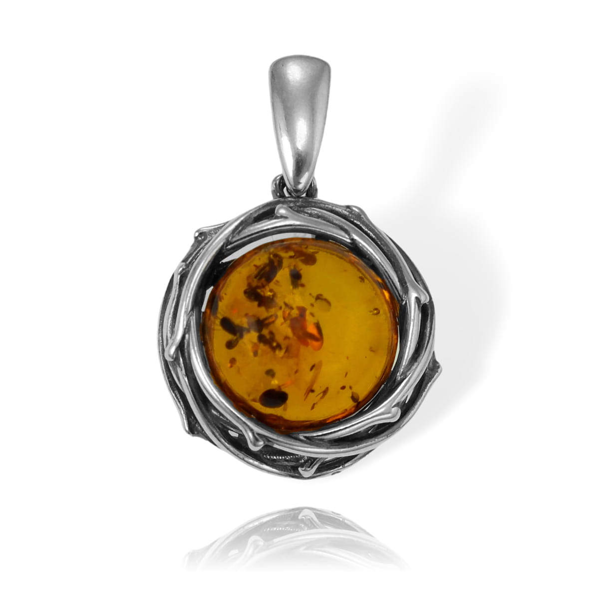 Srebrny Fantazyjny Wisiorek z Bursztynem